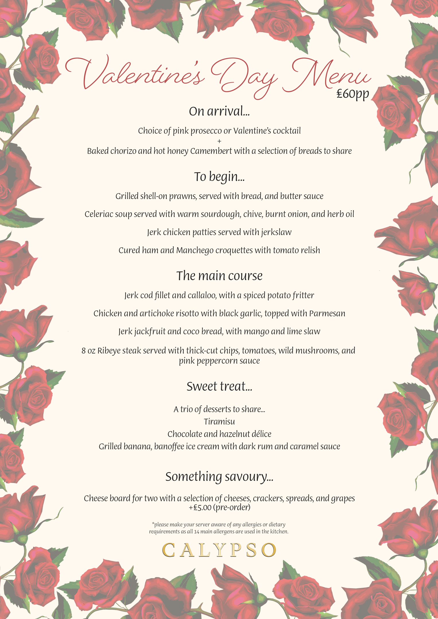 Celebrate Valentine’s at Calypso with our 4–5 course menu featuring thoughtfully crafted dishes, elegant flavours, and a romantic dining experience designed to be savoured together.